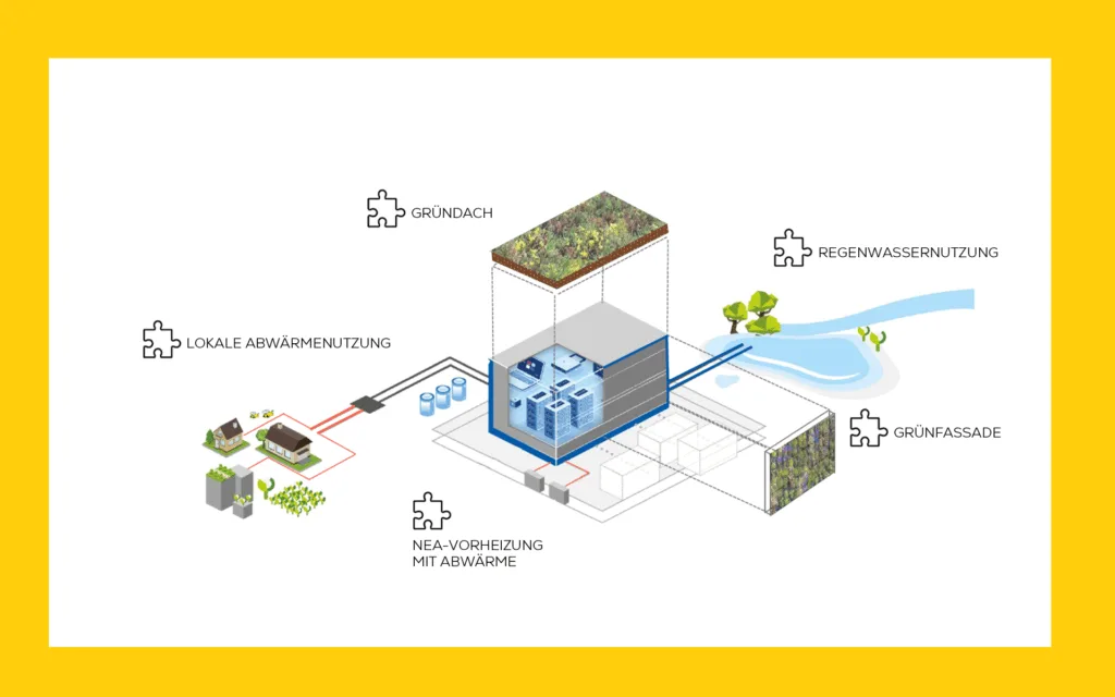 Das Rechenzentrum wird modular vorgefertigt aufgebaut und die technische Infrastruktur in kompletten Bausteinen – wie Notstromaggregate, Transformatoren u.v.m. – hinzugefügt sein. Die zweigeschossigen modularen Datenhallen können sich auf eine Gesamtfläche von insgesamt ca. 5.800 m² erstrecken. Vorgesehen sind dafür insgesamt 14 Module mit einer IT-Last von je 750 kW (N+1). Die Bauphase 1 des Projekts wird aus zwei gestapelten 750-kW-Modulen bestehen, ergänzt durch ein separates, kleineres Modul für Treppenhaus und Aufzug zum Obergeschoss. Die weiteren Module werden hinzugefügt, sobald das Rechenzentrum hochskaliert werden muss. Damit wird sichergestellt, dass Kapazitäten nur nach Bedarf schnell erweitert werden, ohne gleich ein komplettes Rechenzentrum neu errichten zu müssen. Das ermöglicht eine bedarfsgerechte und nachhaltige Expansion.